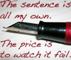 Description: a fountain pen, text "The sentence is all my own. The price is to watch it fail."